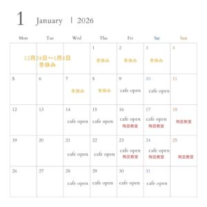 2026年営業開始は1月9日(金)〜【1月のランチ・陶芸教室】の日程について